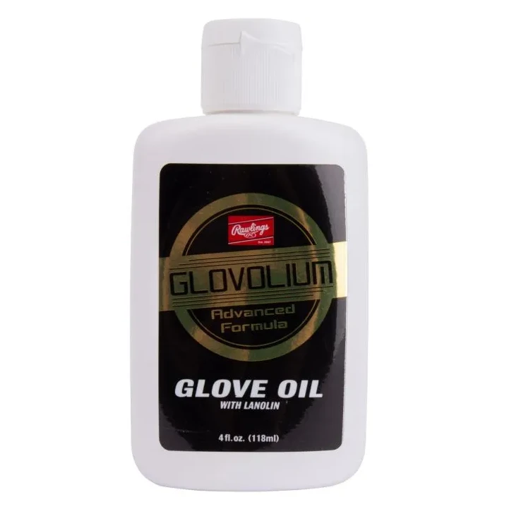 Rawlings advanced-formula Glovolium is a non-petroleum, non-toxic liquid emulsion that cleans, preserves, softens, and helps break-in gloves.