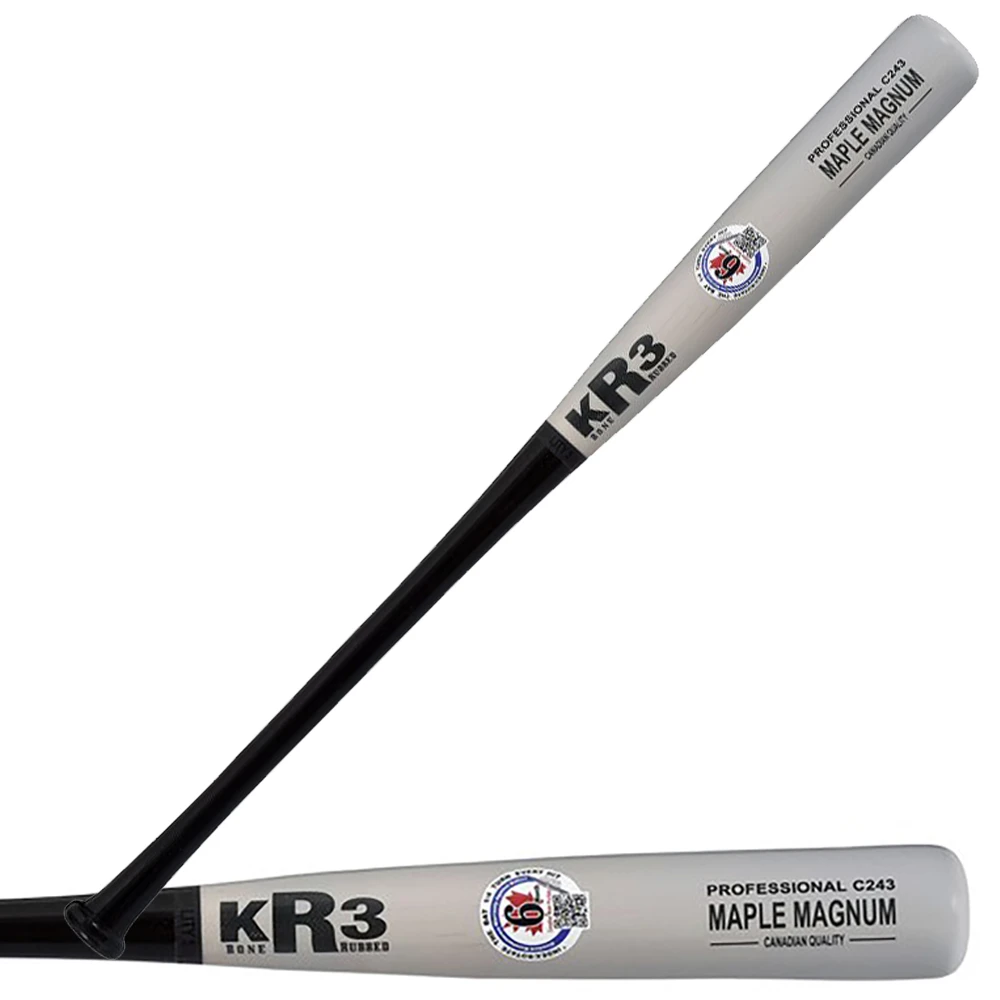 Our High Performance Wood Composite bat featuring Pro Ink Dot Certified Canadian Rock Maple, Hand Split and Further Strengthened with fiberglass biaxial sleeving applied with our Special Blend of Rock Resin Epoxy which was designed by the President of KR3 with over 45 years of experience and is Available Only to KR3. Every billet is sorted and graded on structural elements then accurately weighed to ensure excellent model consistency. This series launched in 2003 and is continually improved with in-house lab testing to Exceptional Performance levels in Strength, Stiffness and Maximum Pop to Ensure it will Drive the Ball Farther. Larger Barrel Options Available and comes with a 6 Month Limited Warranty against manufacturer’s defect.