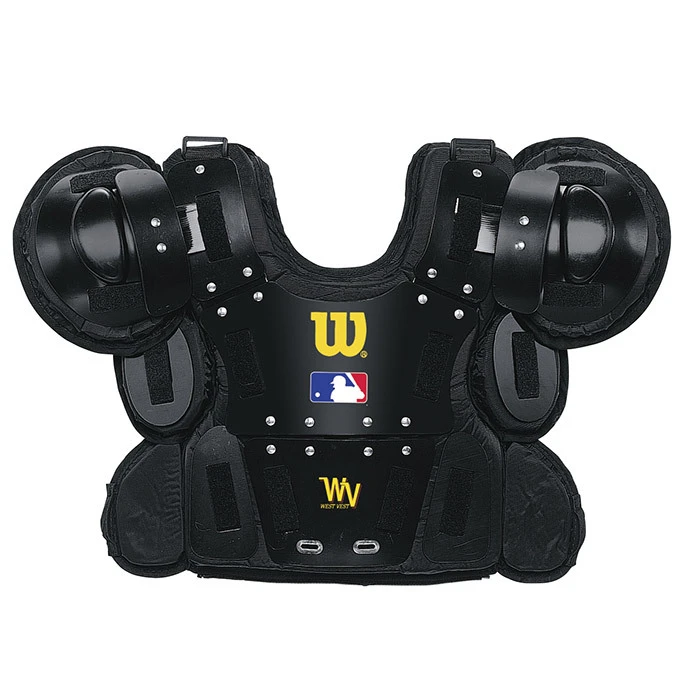 The ultimate in umpire protection, the West Vest Pro Gold Chest Protector has hinged shoulder plates for a tailored fit and extra side protection around the ribs for comfort and protection. The longer length provides more coverage than other chest protectors, and the removable pads make maintenance easy all season long.