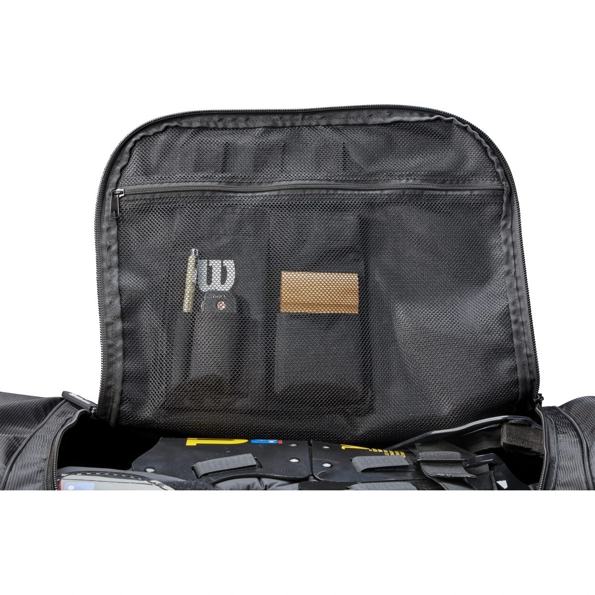 The all-new Wilson Umpire Bag is made for crews on the road. Divided upper and lower compartments allow you to keep gear and clothing separate. A vented shoe compartment and interior pocket allow you to stay organized all summer long. Designed with a Comfort Grip Cargo Handle and Inline Wheels with Rails, it combines functionality with comfort – making this the perfect bag for any big-time umpire.