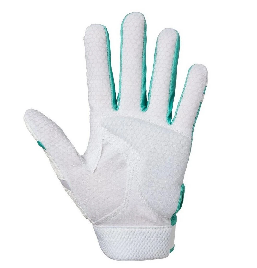 Created with direct input from softball legend Jennie Finch, the Finch Women’s Softball Batting Glove is designed with the softball player’s specific needs in focus. Features a padded nonslip Mizuno ShockPalm to absorb vibration for less sting and better comfort. Made with an FlexMesh back designed to increase flexibility and breathability.