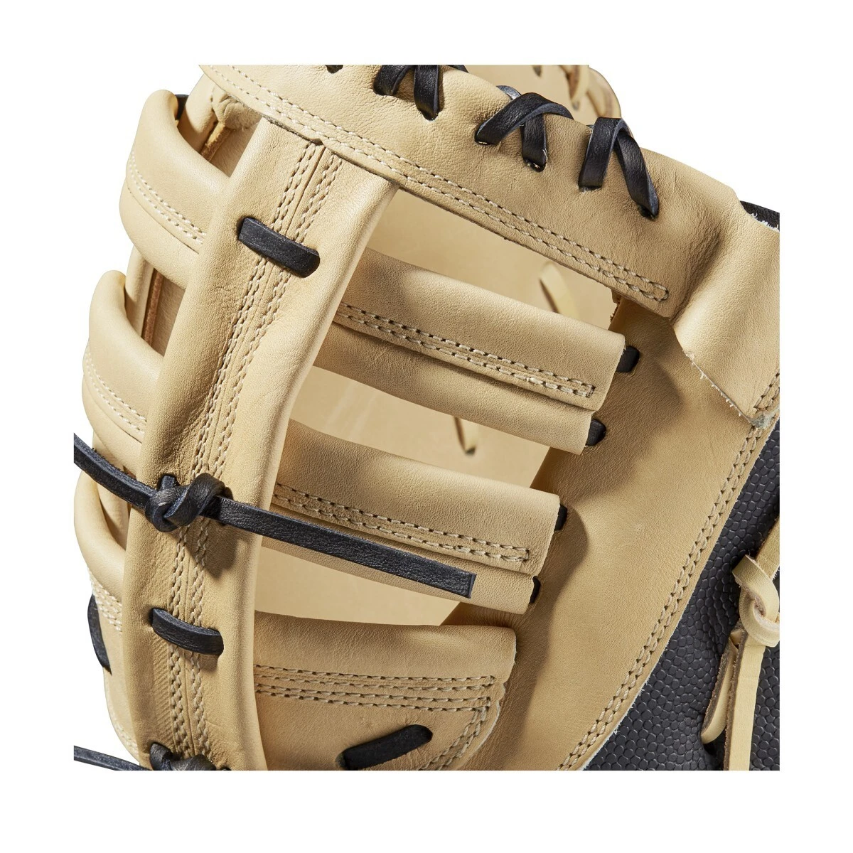 A quarter-inch shorter than its 1620 counterpart, the A2000 2820SS features a Double Break design and Reinforced Single Post Web. Moisture-resistant, lightweight Black SuperSkin help cut down the weight of this first base mitt and Blonde Pro Stock Leather brings the most durable ball glove leather in the world to your side. New outlined Bold Logos put the finishing touches on this model perfect for the game’s best first basemen.