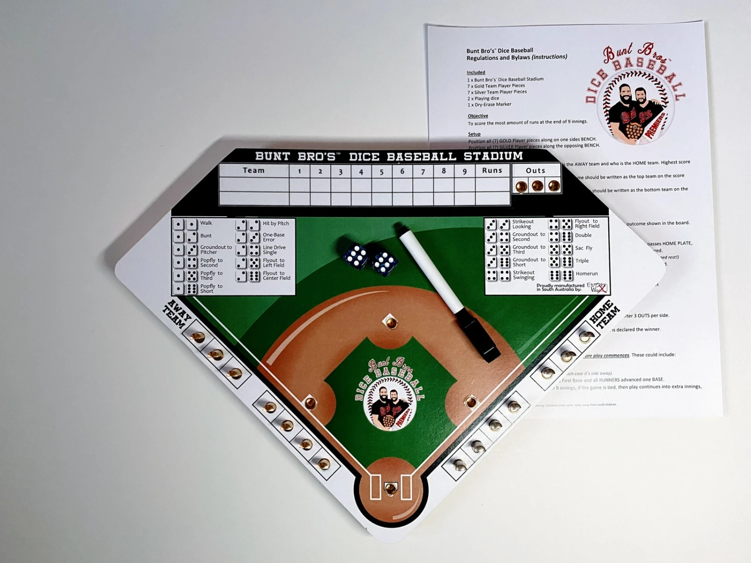 Now you can enjoy the fun and excitement of tournament baseball from the comfort of your own coffee table. Crafted from solid timber, the Bunt Bros Dice Baseball Stadium will outlast your playing career. Delivered right to your door in its unmissable pizza box packaging, piping hot and ready to play.Β Includes Printed Regulations and Bylaws (who needs a plate meeting, when you have instructions).